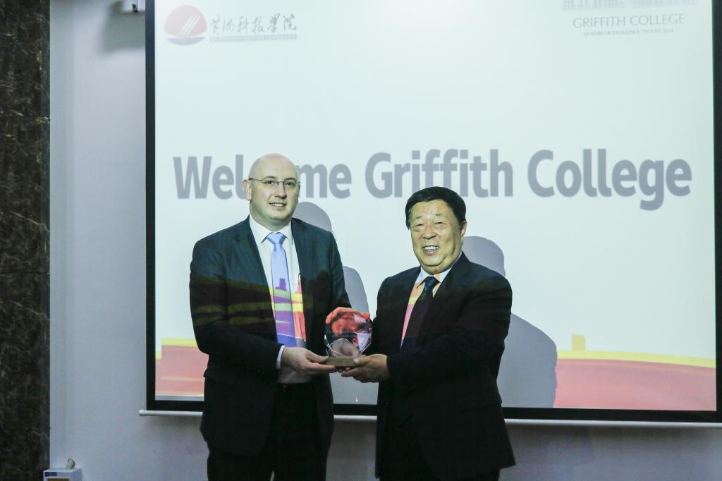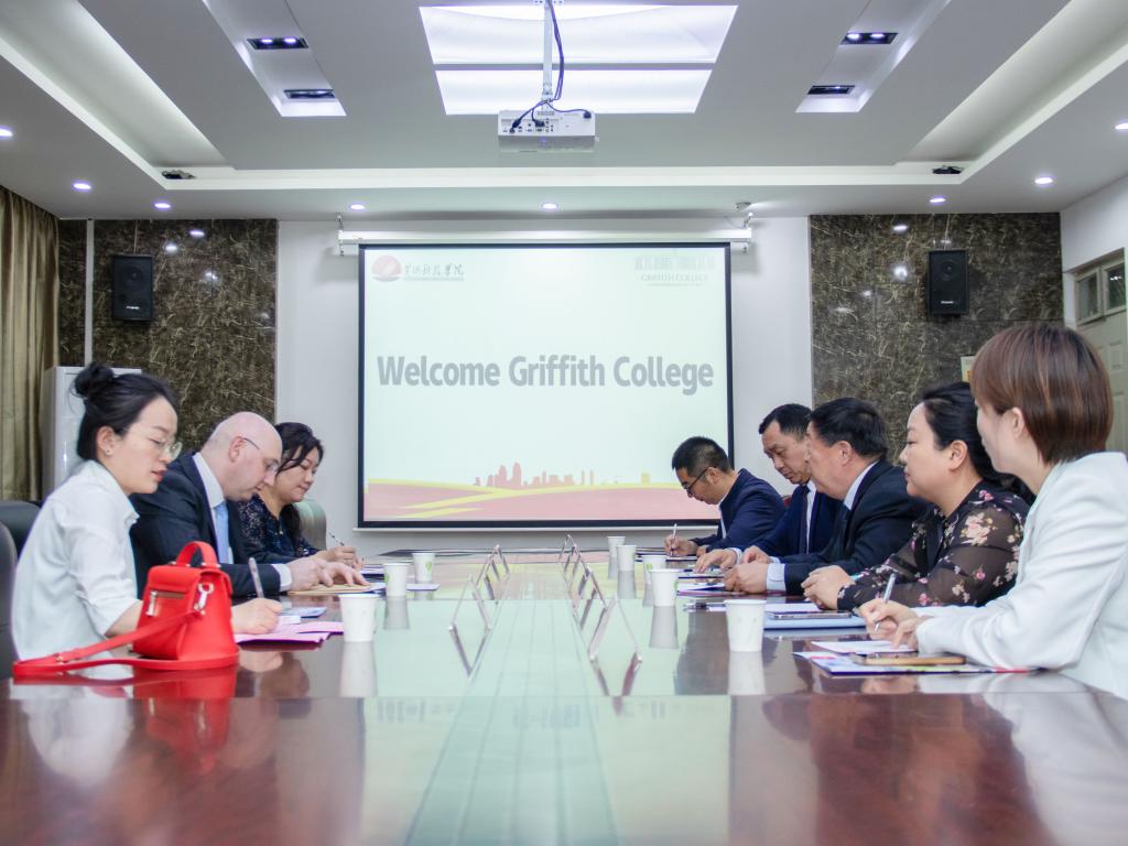 23日上午,爱尔兰格里菲斯学院(Griffith College)副校长兼国际事务办公室主任Kevin Geoghegan、大中华区及蒙古市场总监罗迟到学校访问交流。校董事会专家委员会主任赵卫东、国际交流中心主任兼国际学院分党委副书记郭建伟、国际学院院长助理张欣欣以及相关人员参加会议。会议由郭建伟主持。