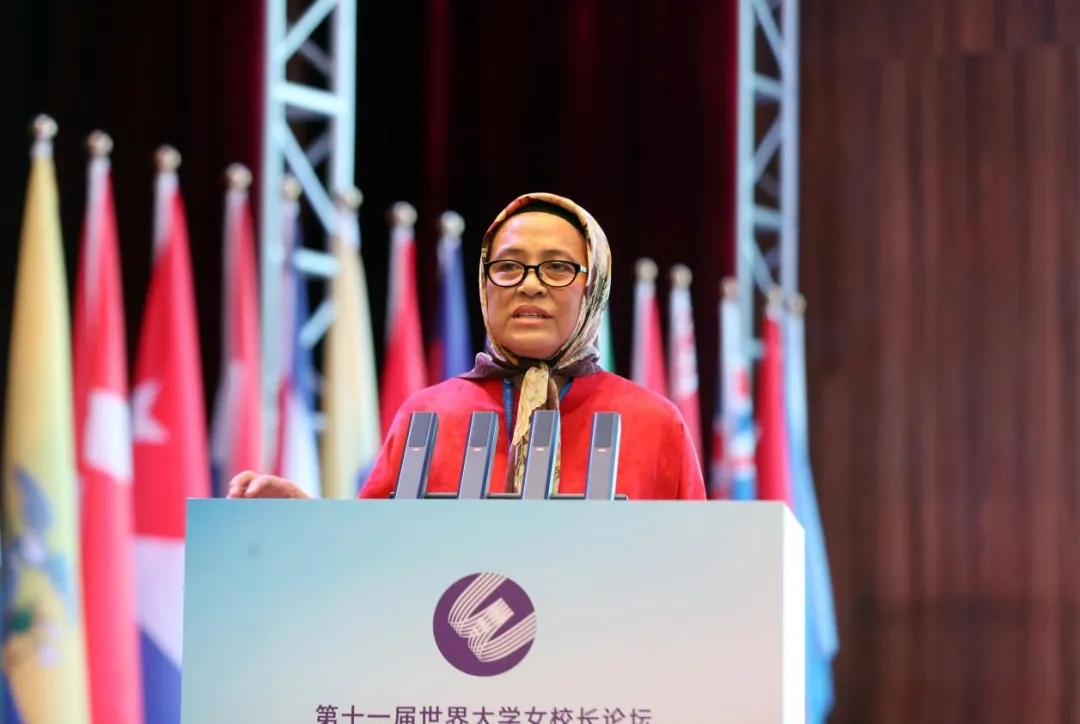 马来西亚思特雅大学副校长西蒂·哈米莎·宾蒂·塔普西尔作了《马来西亚高等教育赋能女性:利用人工智能和教育开放推动学术领导力性别平等》主题演讲。