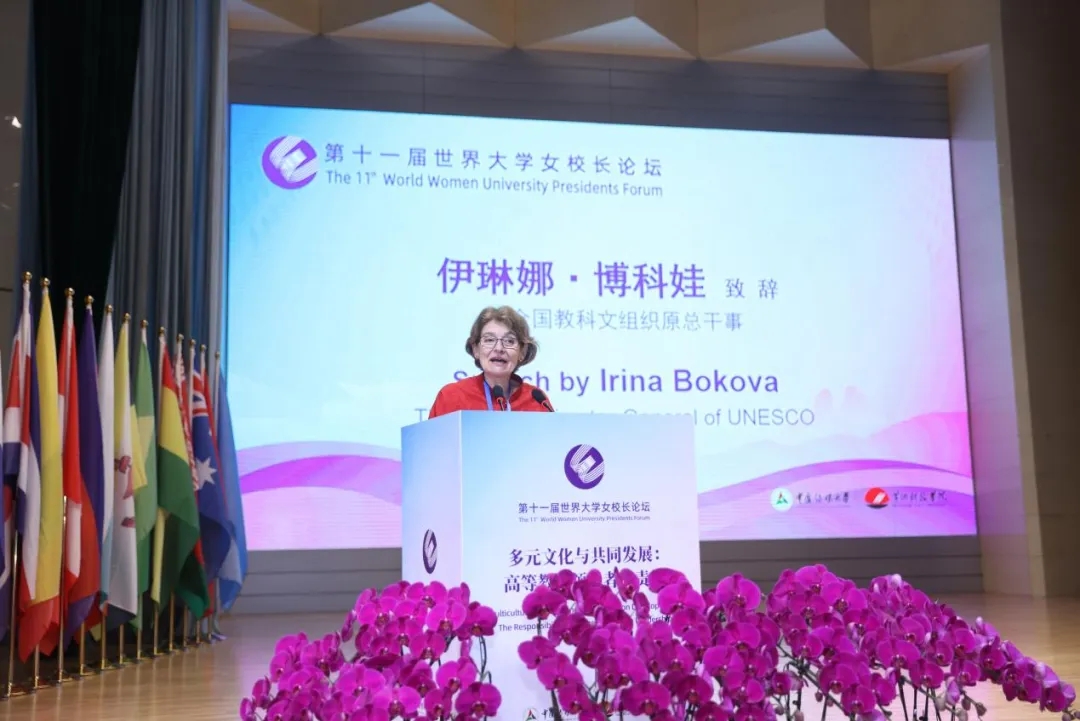 伊琳娜•博科娃在致辞中表示,使学习者具备应对当前挑战的能力,需要强调三点:一是使可持续发展教育的概念贯穿各个学科的教育,使每个人都能获得促进建设更加可持续社会所必需的价值观、能力、技能和知识;二是大学通过革新,在一个变化速度前所未有的世界中教导年轻人批判性思维和好奇心,同时拥抱变革;三是通过人文教育理解社会转型及其管理方式,同时理解并了解他人的历史和文化,培育新的全球公民。