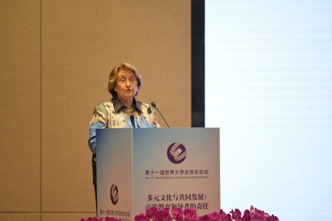 英国爱丁堡大学原大学委员会主席德博拉·卡因贝作了《携手共创更美好的世界》主题演讲。