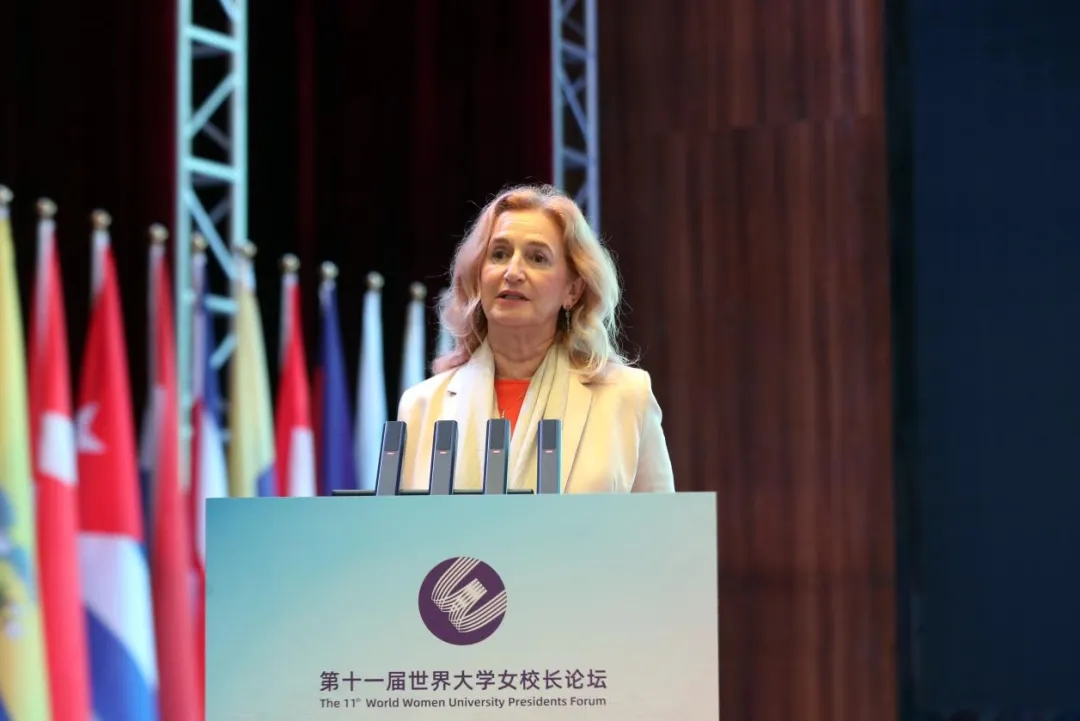 欧洲大学女校长协会副主席、土耳其卡迪尔哈斯大学校长桑丹·杜鲁卡诺奥卢·费伊兹作了《赋权女性,促进学术界女性领导力发展》主题演讲。
