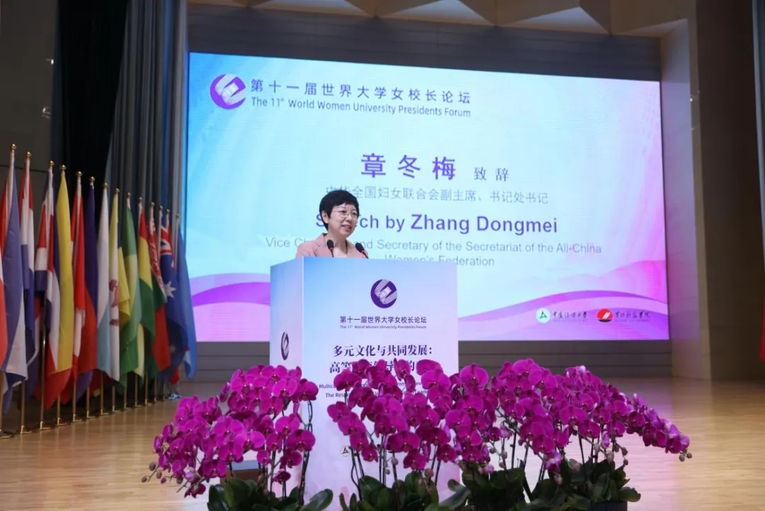 章冬梅在致辞中指出,党和国家政府高度重视妇女发展,义务教育阶段性别差距基本消除,高等教育中女生教育持续扩大,“互联网+教育”助力更多的女性发展成才,在推进教育公平及妇女教育事业高质量发展方面,取得了丰富的经验和成就。她表示,世界大学女校长论坛是女性高等教育的盛会,搭建了开放的交流平台,汇聚了世界大学女校长的力量,成为全球女性教育家的精神家园。中国传媒大学校长张树庭代表论坛主办方致欢迎辞。