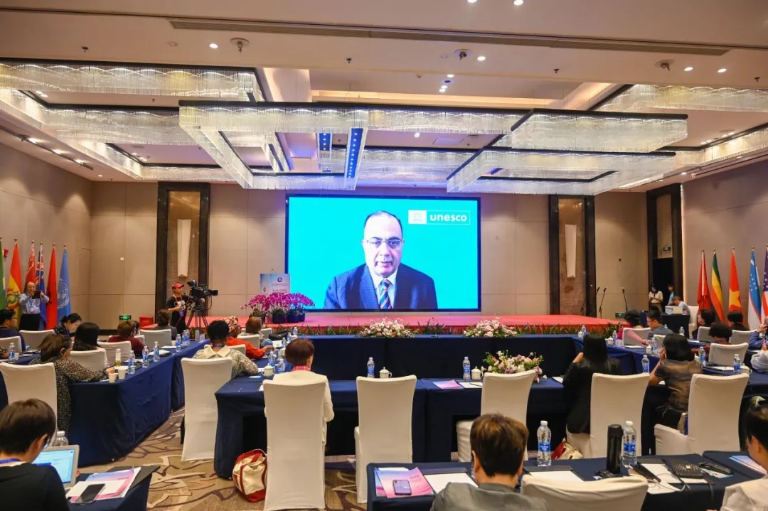 联合国教科文组织东亚多部门地区办事处主任夏泽翰在闭幕式上视频致辞。他表示,人工智能、机器人技术、3D打印、云计算、大数据和物联网等高速发展,在前所未有的技术进步时代,我们站在了创新和可持续发展的十字路口,高等教育机构必须进行改革和转型。他强调,作为各自机构的领导者和全球公民,我们拥有进行积极变革的力量,来建设一个更具包容性和公平的世界。